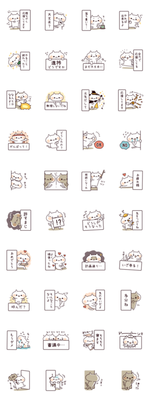 メッセージの陰から一生懸命応援や励ましなどをしてくれる、可愛いねこのスタンプです!DECOR より発売