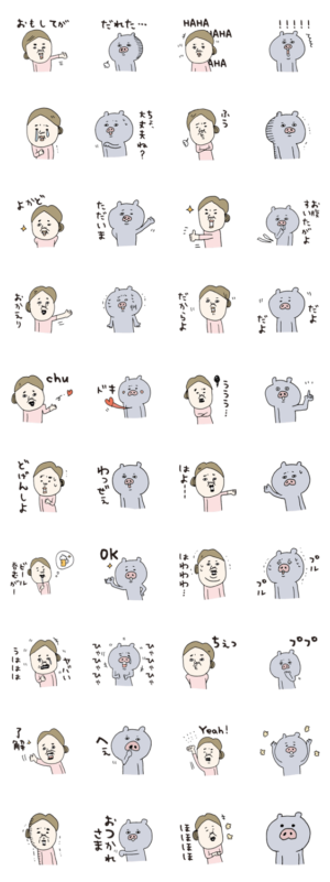 鹿児島弁のブスとブタのスタンプ。鹿児島弁で喋りますがよー。HIFUMIYO.LLC より発売