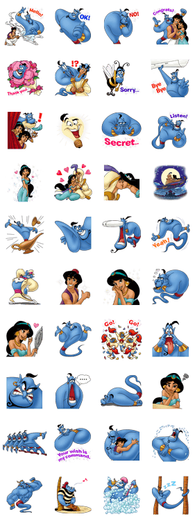 アラジンのスタンプです。表情豊かでにぎやかなスタンプをラインに飾ってトークを盛り上げましょう!