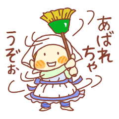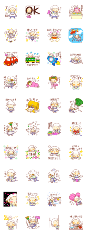 エプロンをした、小さくてかわいい生きもののスタンプです。sori より発売