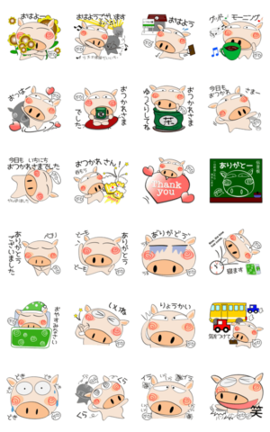 キュートな「ブタさん」シリーズに「よく使うことば」を揃えました。毎日使うことばに複数のバリエーションがあります。シーンに合わせてお使いください。