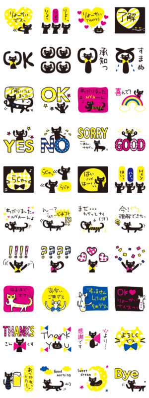 シュールで大人可愛い黒猫の『了解』が多めのスタンプ。よく使う了解、OKがたくさん!敬語も英語もあるよ♥オシャレで日常で使いやすい!春夏秋冬いつでも対応〜っ