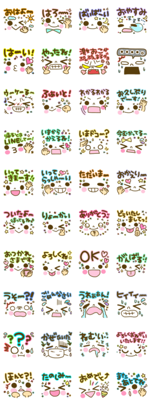 文字が大きくて,毎日使えるパステル風の絵文字スタンプだよ!!