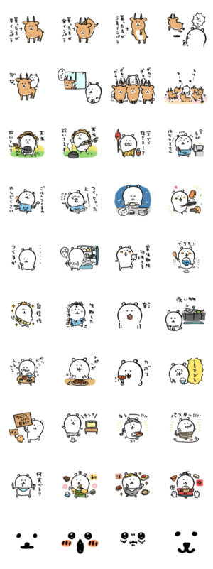 自分ツッコミくまとインパラと料理。 最後の一行は食べ物にスタンプとして貼り付けて遊んでねナガノ より発売