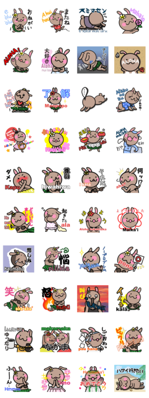 フラダンスが大好きなうさぎ「フラビット」。ハワイ語で色々な言葉を伝えてくれるよ。ALOHA!きよきよ より発売