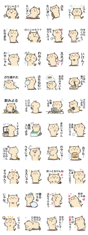 広島弁にゃんこのスタンプです!広島県民にはもってこいのスタンプですのでぜひぜひお使いください!日常生活で使いやすい広島弁の言葉を集めてみました!takashi より発売