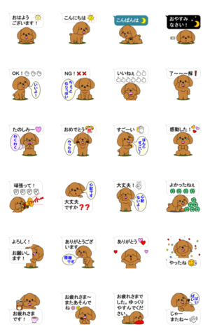 吹き出しの文字とトイプーが日常の挨拶や会話を盛り上げます。