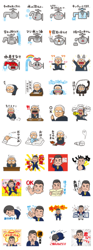 かわいいおじさまと水道のシュールなスタンプです。ぜんすいどう より発売