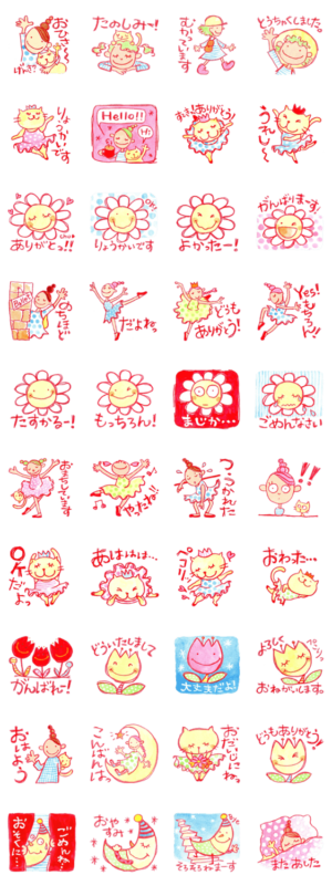 ガールスとネコとお花と月と vol.2 スタンプ画像一覧