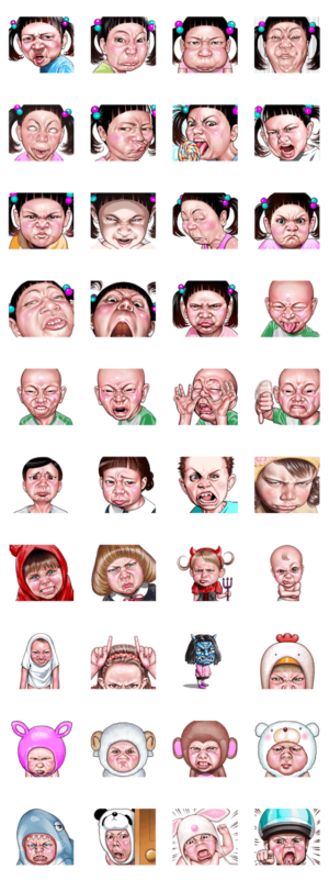 怒り顔スタンプの第2弾です。今回は、「子供の怒った顔」でまとめたスタンプです。虹吟 より発売