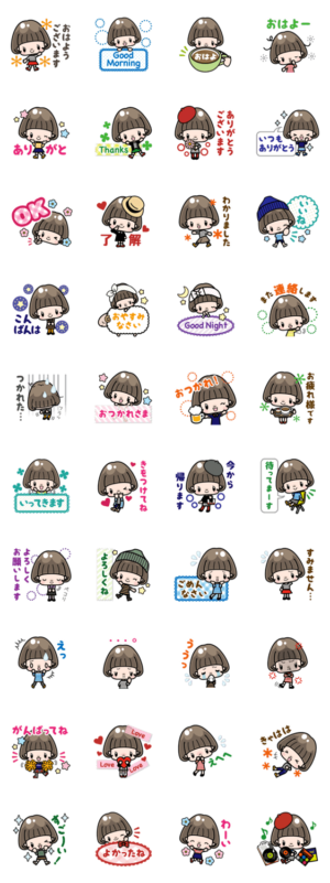 よく使う言葉をいろいろなバリエーションで!ママ友や家族、先輩にも使えますよ☆ボーダー&フレンチカジュアル好き女子、ナチュラルボブGirl、主婦さんにおすすめです♪copochan より発売