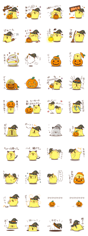 ハロウィンを楽しんでいるひよこさんのスタンプです。にぎやかなスタンプをラインに飾ってトークを盛り上げましょう1