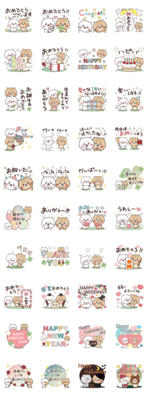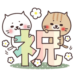ねこまる【トラまる&シロまる】のお祝いの言葉のスタンプです♡おめでとう/誕生日/記念日/入学/卒業/各種イベントに一年中使えるスタンプのセットです。