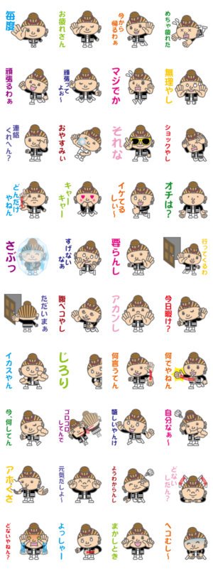 大阪の泉州弁スタンプの女性版です。汚い言葉は多いけど、愛くるしいよ。だんじり、やぐら、布団太鼓など祭り好きには、ピッタリ!