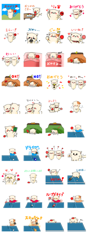 卓球または猫好きのためのスタンプです。日常でも使いやすいこと間違いなし!卓球の技を使って友達と卓球ラリーもできるよ!