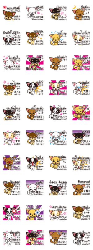 チワワンズの日本語とタイ語 スタンプ画像一覧