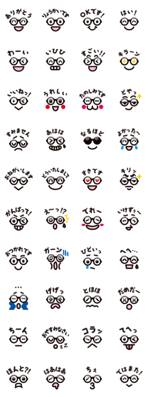 シンプル メガネ Message スタンプ画像一覧