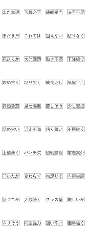競馬スタンプ_ー短評・寸評コメントver1 競馬新聞での短評をスタンプにしました。競馬以外の会話でも使えます。簡易に返信したいときに使い勝手がいいです。