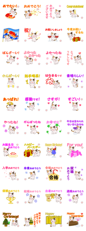 ちび三毛猫 おめでとうスタンプ スタンプ情報