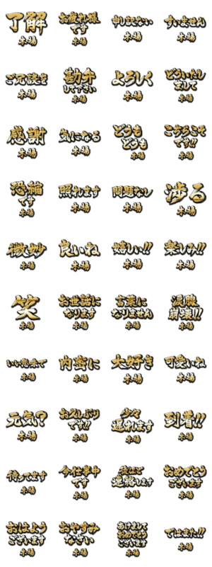 【木場】専用。黄金の筆文字スタンプ。キャラなし、デカ文字。お値段そのままで超豪華、超ゴージャス。贈答用に最適。