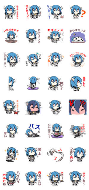 「邪神ちゃんドロップキック」のスピンオフコミック「ミノスのビーフ100%」からスタンプが登場!「おはよう」から「肉焼く?」まで可愛いミノスをたくさん使ってね!