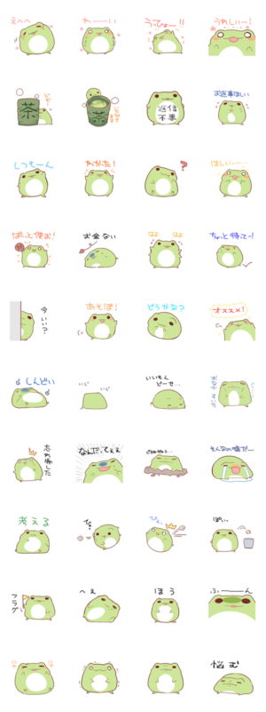 ころころとした大福のようなカエルのスタンプ第2弾です。しろくろ より発売