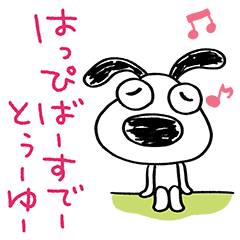 犬のバウピー。お祝い編。「おめでとうございます」から「お誕生日おめでとう」まで。お祝い言葉がいっぱい。心温まるお祝いメッセージを、バウピーとともに届けよう。
