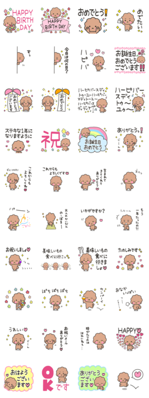 トイプードルの女の子、ビビさんのお祝いスタンプです♡satomi より発売