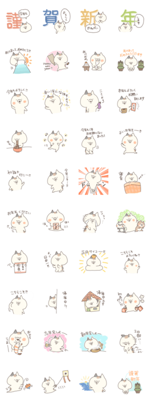年末年始の挨拶など、お正月シーズンに使えるねこスタンプです。今年もよろしくお願い致します。ぽち より発売