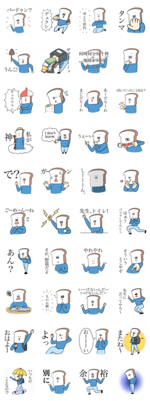 小学生、中学生のあの頃を思い出すスタンプ。腹が立つけど憎めない食パンくんです。