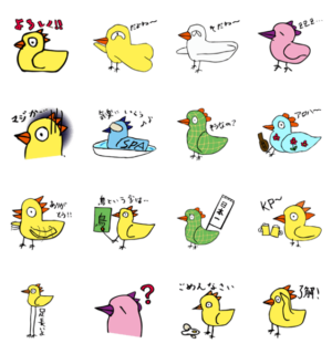 10才の小学生がデザインしたスタンプです。ヒヨコがニワトリへと育つ途中で成長が止まってしまった生物「コケピヨ」と、そのおかしな仲間たちの世界をお楽しみください。
