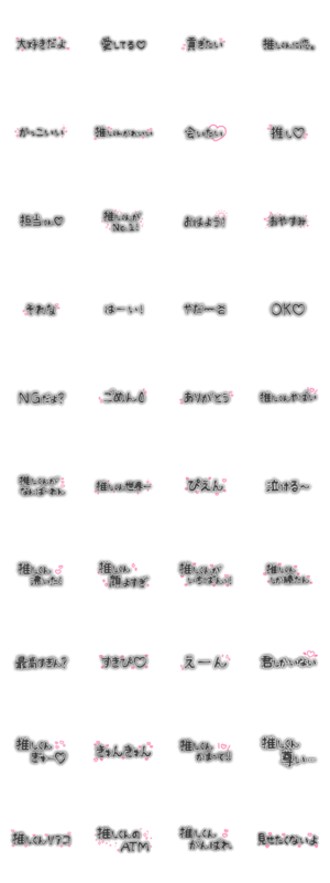アイドル・俳優・ホスト・声優さん・歌い手さん...あらゆる推しがいる、推しが大好きな方のための量産型オタクスタンプです。