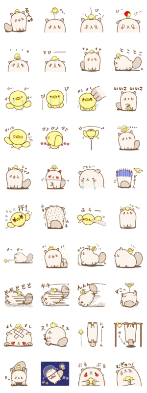 にゃんとぴよこさんスタンプ。効果音付きです。癒し効果を感じます(〃▽〃)