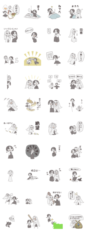 白と黒がメインのスタンプです。かわいい二人のおかげでシンプルだけど賑やかになりました。かわいい二人をよろしくお願いします。kitikiti より発売