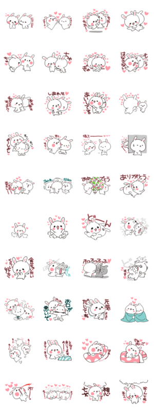 ラブラブなウサギのスタンプ第5弾です。大好評のペアものが多めで、ラブラブ度アップ!株式会社スリーエムズ より発売
