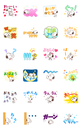 可愛いスヌーピーを控えめに添えて文字しっかり送りたい人向けのスタンプです。