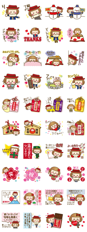 春まで対応♥お正月,年賀状時期に嬉しい挨拶あり!Xmasバレンタインも!妊婦ママさんには安産お守り.受験生には合格お守りを♥厄年さんは厄払いスタンプ!紅ちゃん第二弾!紅おれんじ より発売
