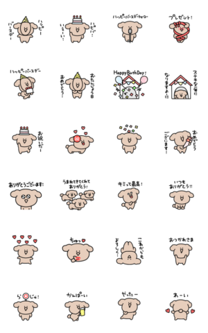 シュールでゆるすぎるミニトイプードルのお祝いスタンプです!eribo より発売