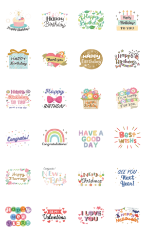 シンプルでお洒落なお祝いスタンプ第2弾★家族、友達、恋人、仕事仲間など色んな方へ是非♪Happy Birthday/結婚/出産/Happy New Year/クリスマス/ハロウィン/バレンタイン(株)シーミュージック より発売
