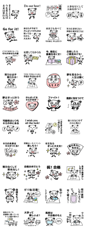 あなたの身近な人に受験生はいませんか?このスタンプで応援してあげましょう。きっとやる気・勇気が湧いてくるはずです。jimery より発売
