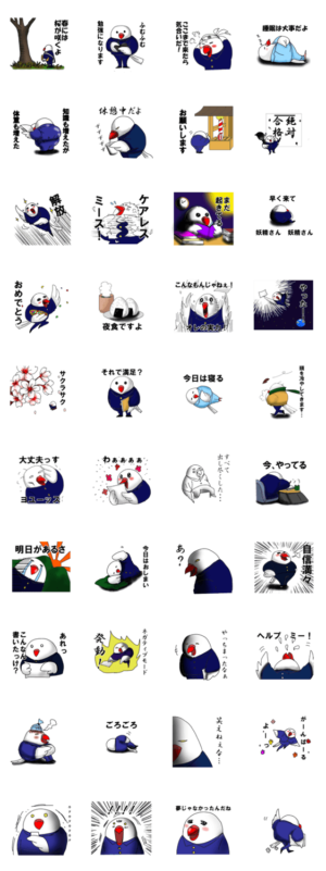 学生になった鳥のスタンプです。これで受験・テストを乗り切ろう!Ohana より発売