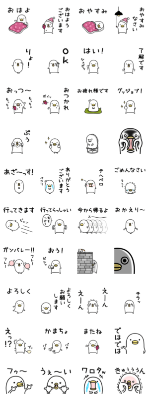 うるせぇトリ★マイルド スタンプに書いてある文字一覧