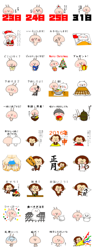 ウサギとネコとサルでクリスマスや年越し、新年や喪中挨拶もあります。ちくない より発売