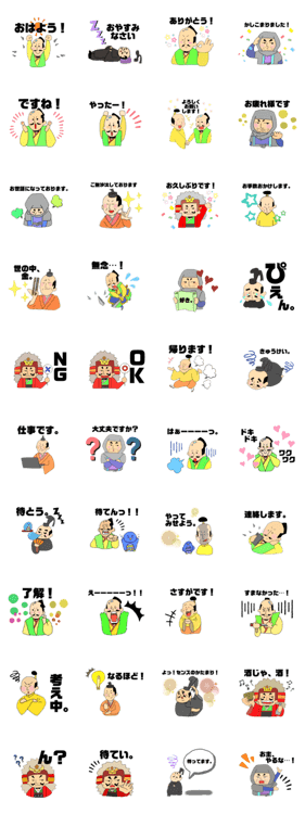 仕事でもプライベートでも使える、戦国武将のスタンプです(*´ω`)