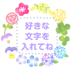 お好きな言葉を自由に入力できます(最大100文字)。花いっぱいの大人かわいいメッセージスタンプです。