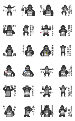 ゴリラの名前は【ゆうた】 スタンプ画像一覧