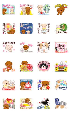 可愛く動く♡いぬの日常会話スタンプ♪ シーズーや黒柴犬、コーギーも登場します♪同じ絵柄で 敬語無しver. も販売中です♪作:ラブリーダム/出産/お祝い/夏/かわいいstudio LOVEREEDOM より発売