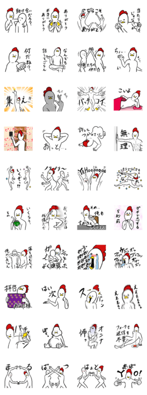 ほんとチキン先輩はかっこいいっす!鶏界のトップっす!一生ついていきます!!と言いたくなるチキン先輩(私)とその後輩ブライアン(あなた)のスタンプ。シリーズ第1弾スタジオ・ナンデヤネン より発売