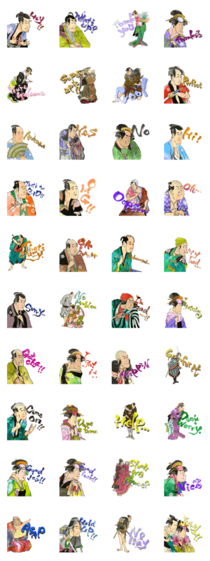 日本好きな外国の方に!使いやすい英語版です。筆文字と色鮮やかな写楽風イラスト。#東洲斎写楽 #浮世絵 #挨拶 #日本画 #和風 #スラング #よく使う #日常英語 #筆 #侍クリュウダイチ より発売