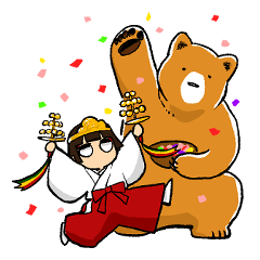 くまみこスタンプ第2弾! スタンプ説明文 中学生の巫女まちとクマのナツが織りなすモフモフ田舎ライフ!株式会社yoshimas. より発売